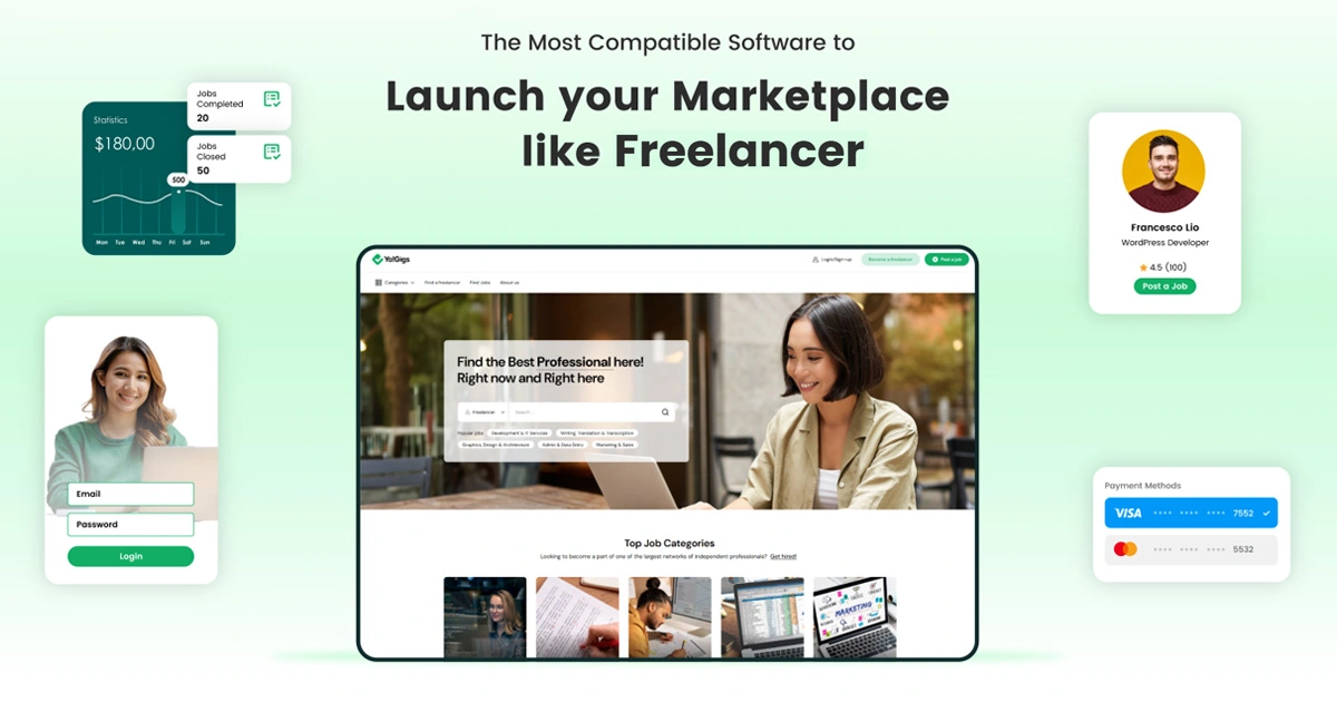 Yo!Gigs is a complete freelancing solution instead of just a clone script. It comes with all the essential features that you require to build a freelancing marketplace similar to freelancer.com and even more. Yo!Gigs also deals with extensive use cases so that you can manage all freelancing operations endlessly. It’s highly professional design ensures you are able to establish a highly memorable marketplace.